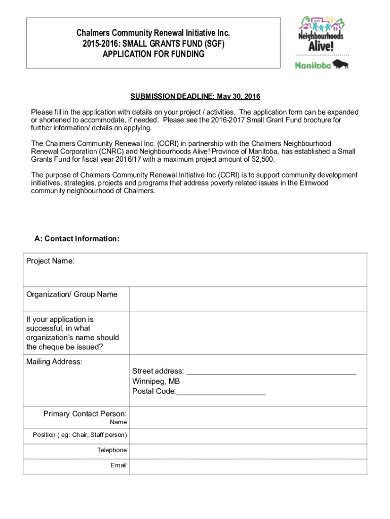 APPLICATION FOR FUNDINGSUBMISSION DEADLINE: May 30, 2016,