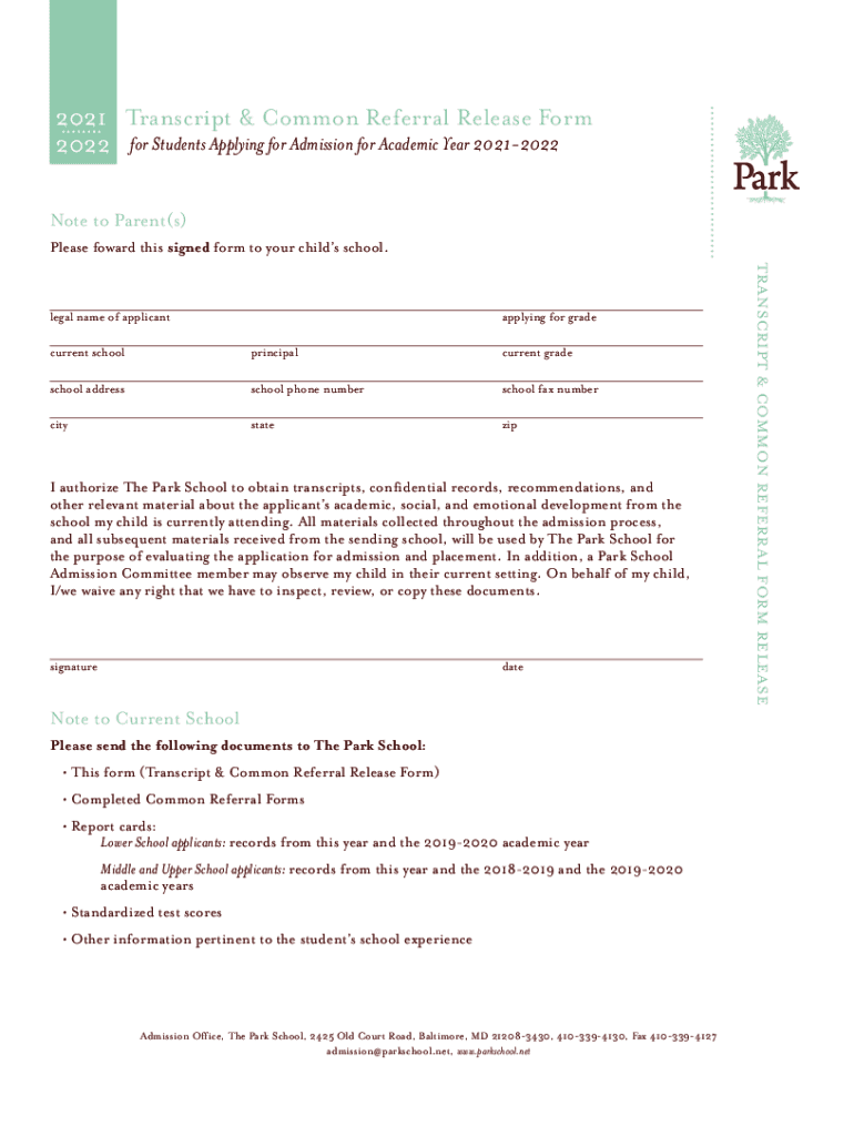 2021 Transcript & Common Referral Release Form 2022 for Students Applying for Admission for Academic Year 20212022 Note to Parent(s) Please forward this signed form to your children school. Applying