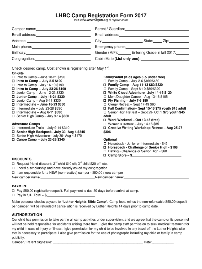 Fill out your lhbc camp registration form online with pdfFiller!