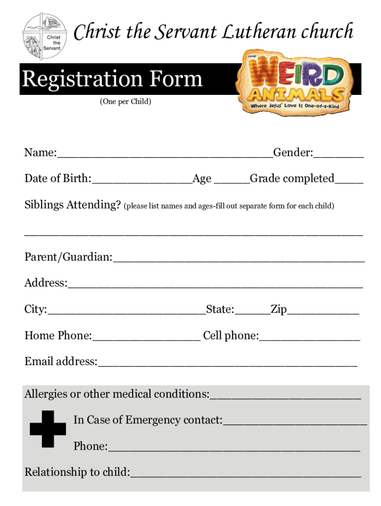 Christ the Servant Lutheran church Registration Form (One per Child)Name: Gender: Date of Birth: Age Grade completed Siblings Attending? (please list names and ages fill out separate form for each