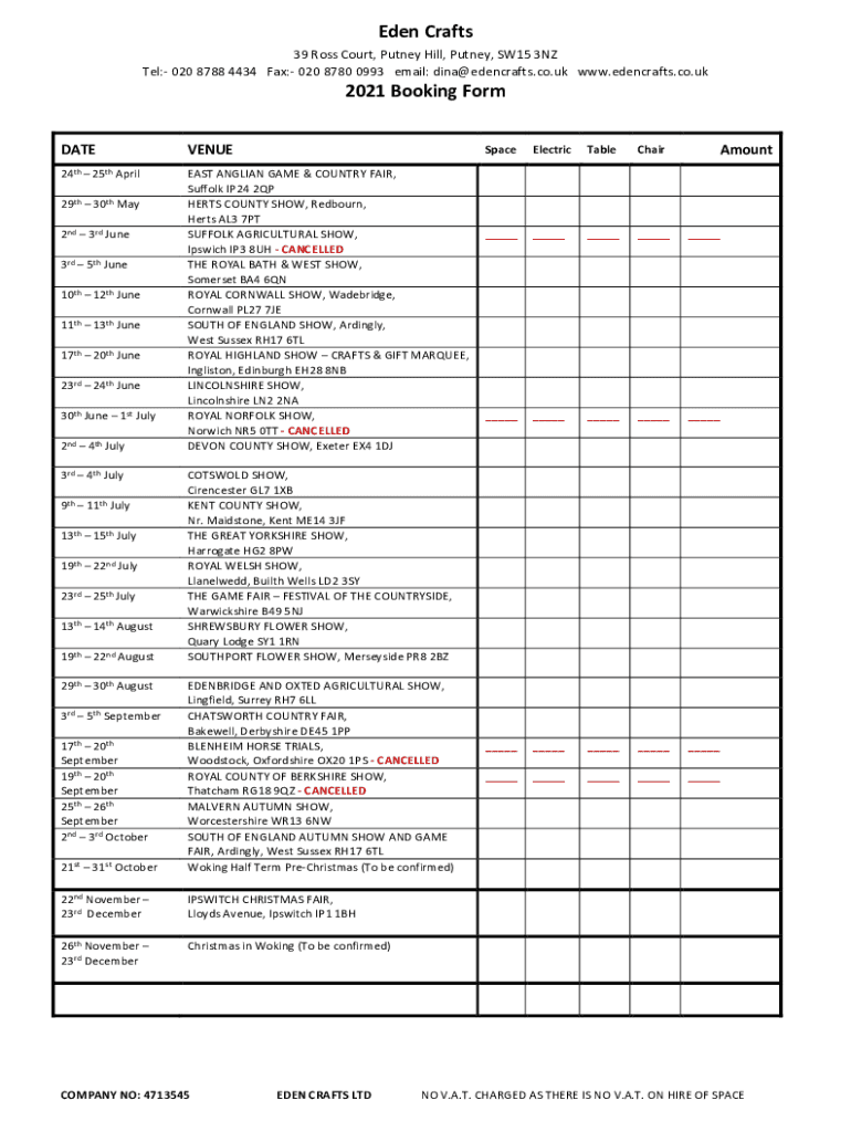Eden Crafts 39 Ross Court, Putnam Hill, Putnam, SW15 3NZ Tel: 020 8788 4434 Fax: 020 8780 0993 email: Dina edencrafts.co.UK www.edencrafts.co.uk2021 Booking Form DATEVENUE24th 25th Priest ANGLICAN