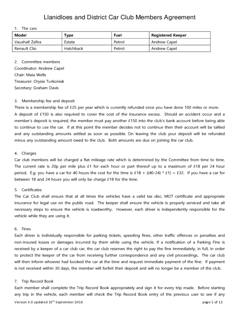 1. The carsModelTypeFuelRegistered KeeperVauxhall ZafiraEstatePetrolAndrew CapelRenault ClioHatchbackPetrolAndrew Capel2. Committee members