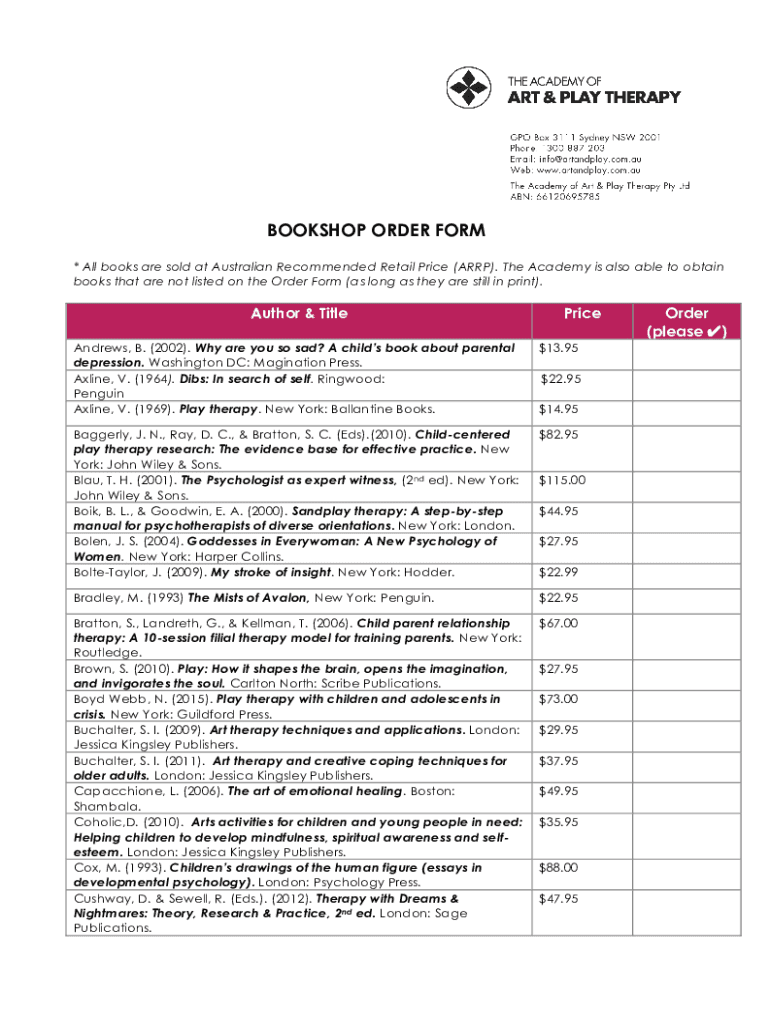 Get the free bookshop order form - The Academy of Art & Play Therapy