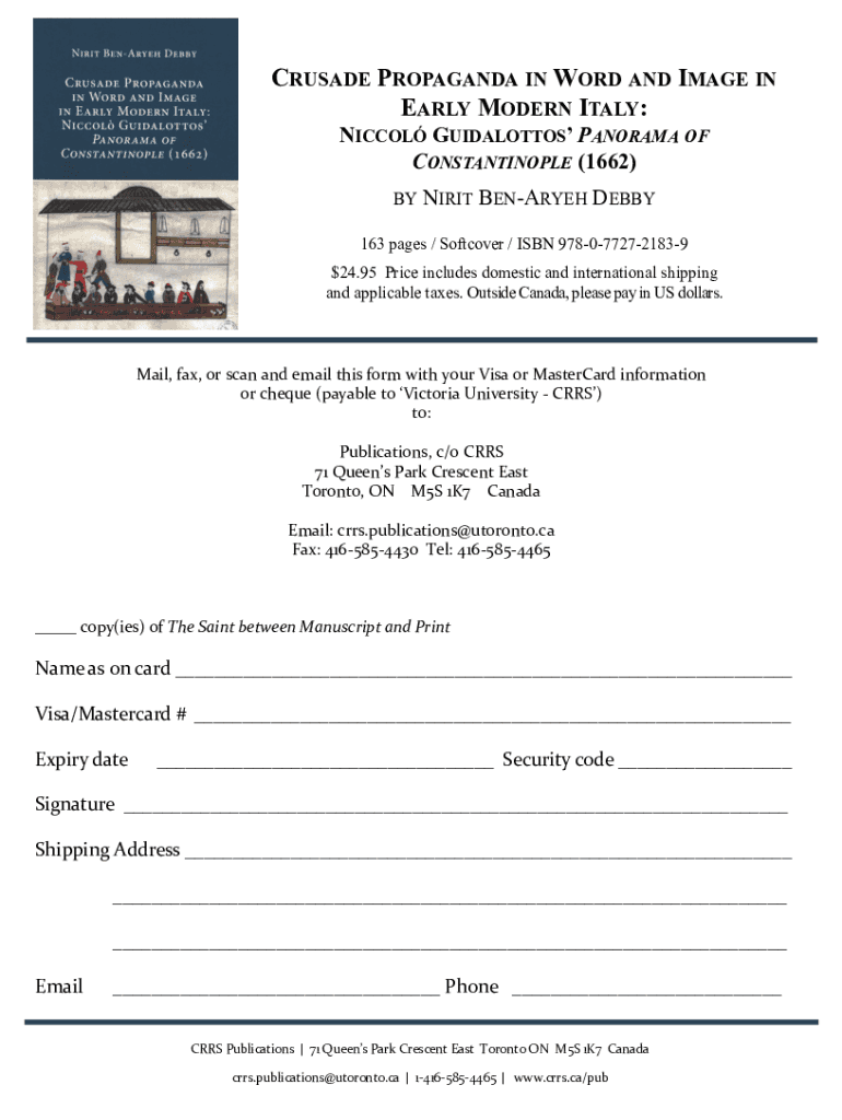 CRUSADE PROPAGANDA IN WORD AND IMAGE IN EARLY MODERN ITALY: NICCOLO GUIDALOTTOS PANORAMA OF CONSTANTINOPLE (1662) BENEFIT BINARY DEBBY163 pages / Softcover / ISBN $978077272183924.95 Price includes