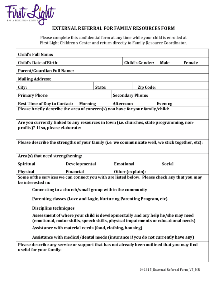 EXTERNAL REFERRAL FOR FAMILY RESOURCES FORM