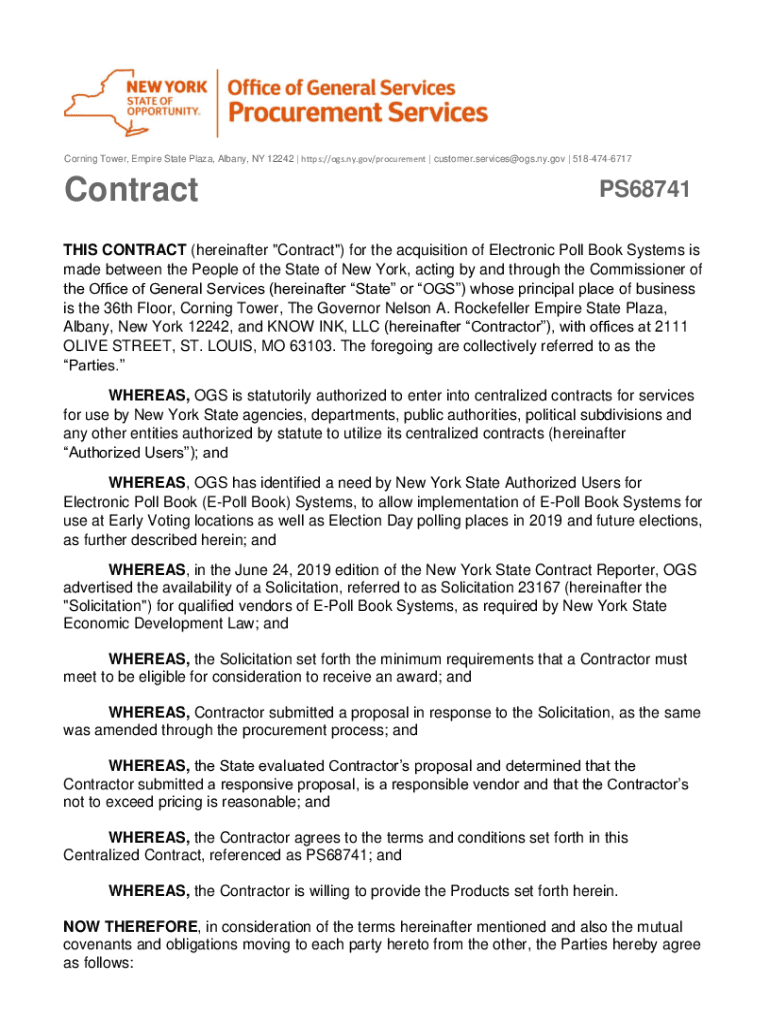 Corning Tower, Empire State Plaza, Albany, NY 12242 https://ogs.ny.gov/procurement customer.services dogs.NY.gov 5184746717ContractPS68741THIS CONTRACT (hereinafter “Contract “) for the acquisition
