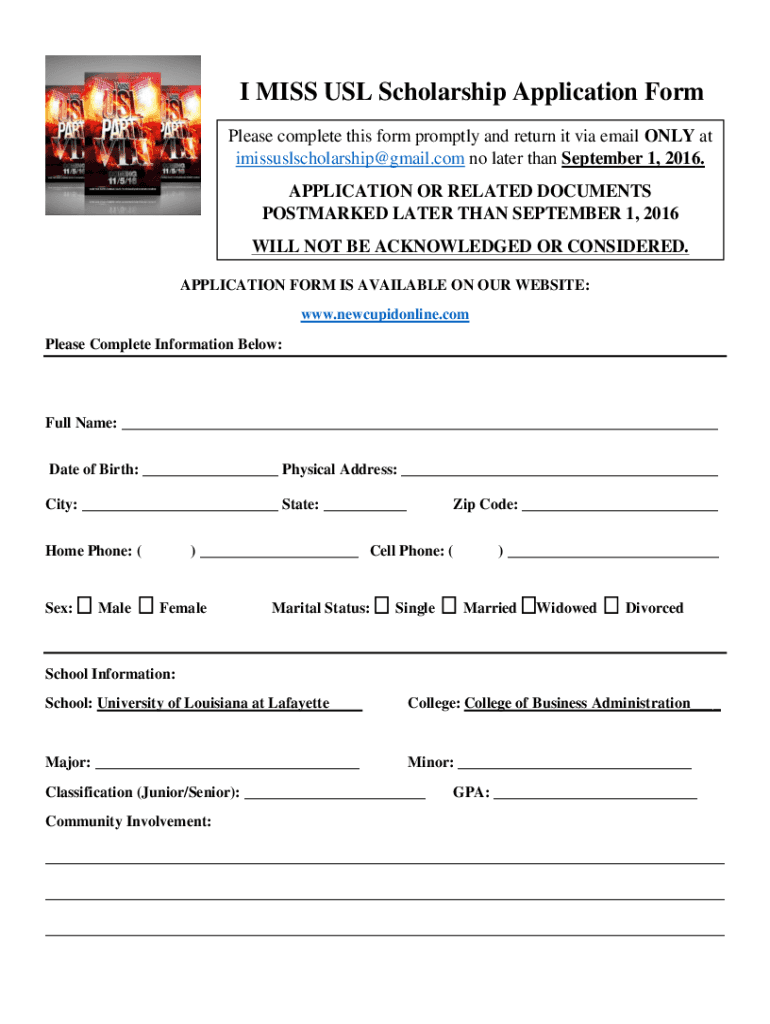 Fill out your i miss usl scholarship online with pdfFiller!