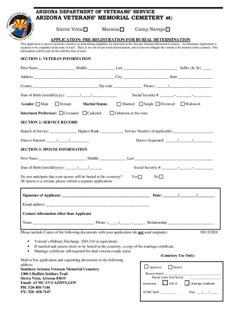 Sierra VistaMaranaCamp NavajoAPPLICATION: PREREGISTRATION FOR BURIAL DETERMINATION