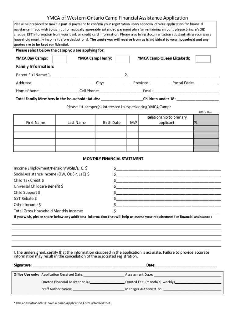 Camp Financial Assistance Application