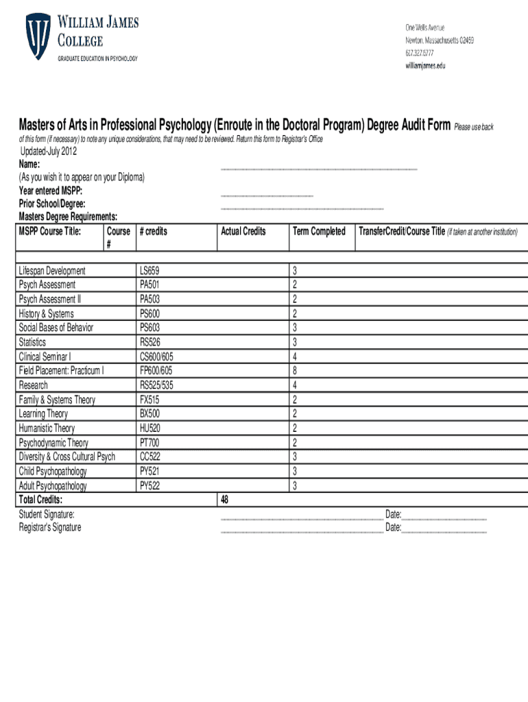 Get the free Masters of Arts in Professional Psychology (Enroute in the Doctoral Program) Degree ...