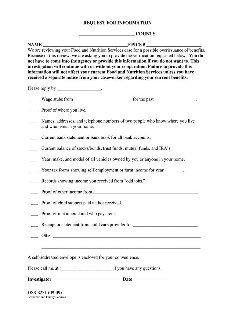 The Request for Information is a government form used by county agencies to verify potential overissuance of Food and Nutrition Services benefits.