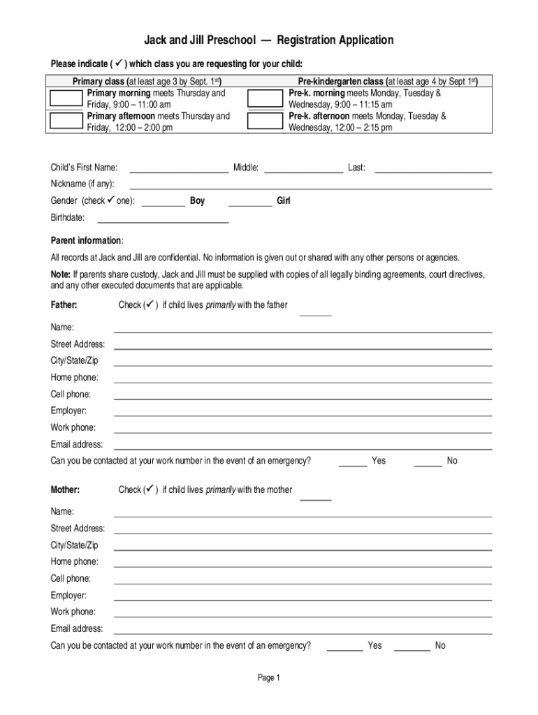 Get the free Jack and Jill Registration Form - Jack and Jill Preschool ...