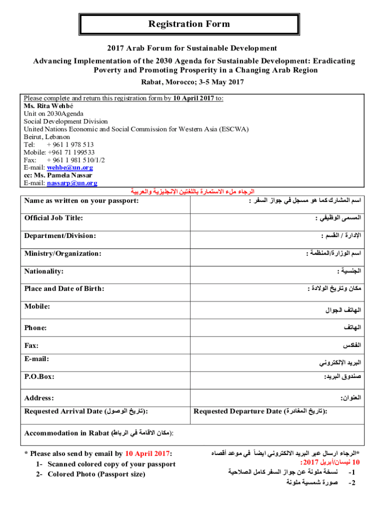 Arab-Forum-Sustainable-Development-2017-Registration Form is not the form you're looking for?Search for another form here.