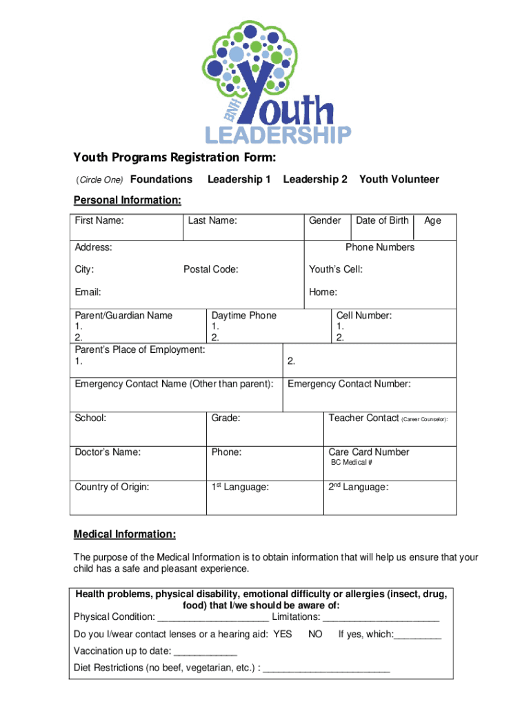LEADERSHIPYouth Programs Registration Form: