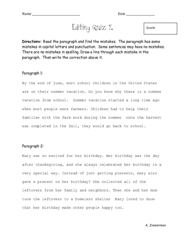 Get the free Editing Quiz 2 - Mrs. Zimmerman's Third Grade G & T Class ...