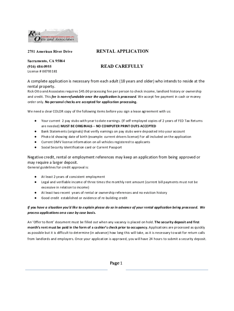 2751 American River Drive Sacramento, CA 95864 (916) 4840955 License # 00793181RENTALAPPLICATIONREAD CAREFULLY complete application is necessary from each adult (18 years and older) who intends to