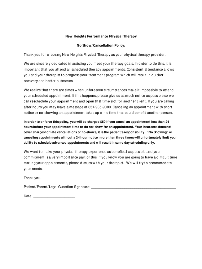 Get the free PDF Commitment to Physical Therapy Late, No-Show, Cancellation and ...
