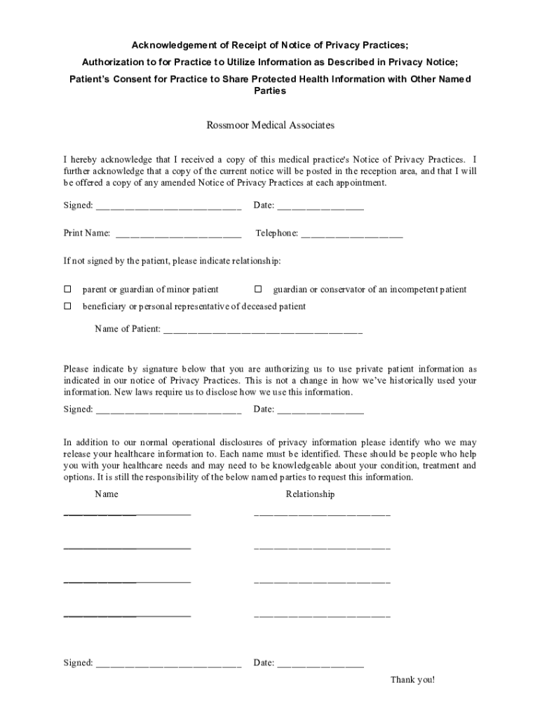 How to fill out notice of privacy practicesacknowlegdementrmadoc