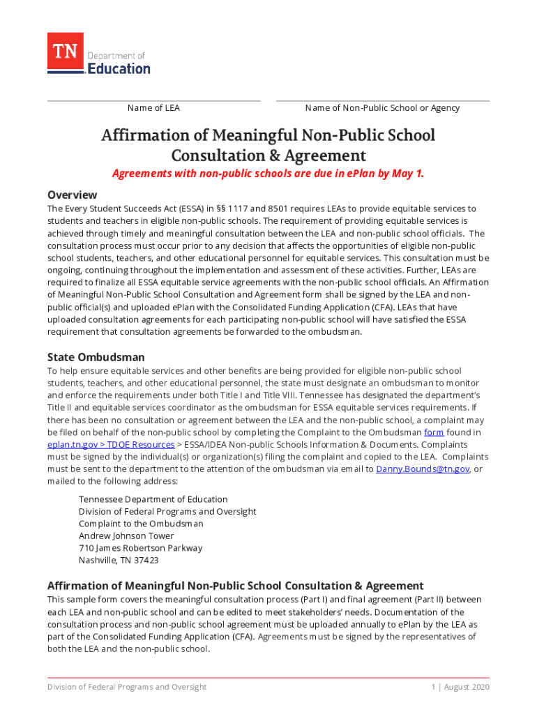 11!!!11 department! Fiji. Education Name of Leakage of Nonpublic School or AgencyAffirmation of Meaningful Nonpublic School Consultation & Agreement Agreements with nonpublic schools are due in plan