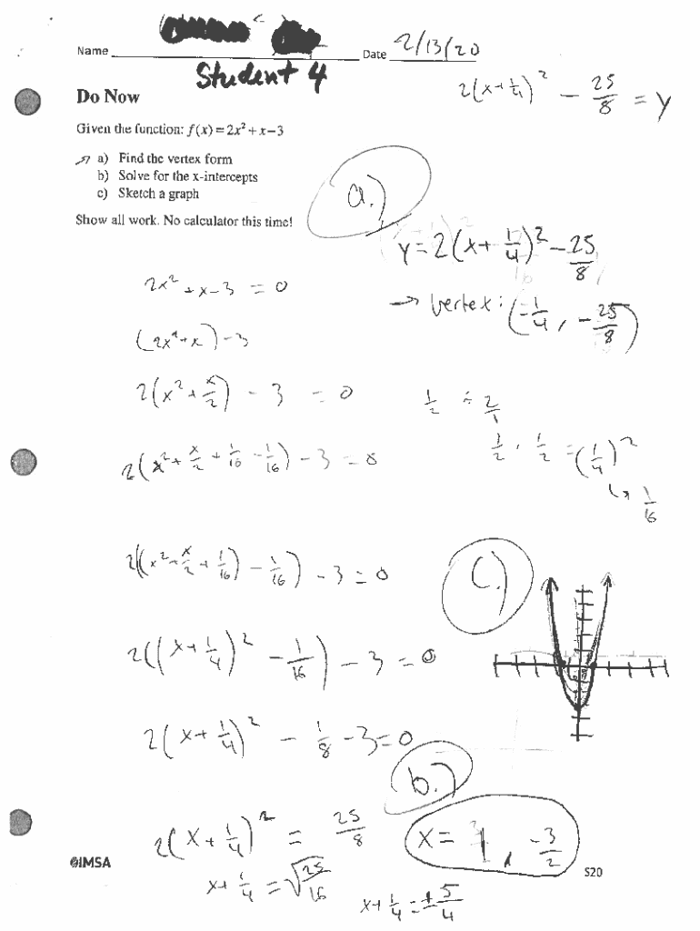 NameDateS4t4n# Ito Forgiven the function: f(x)2×2 +x3 s7 a)Find the vertex form b) Solve for the intercepts c) Sketch a grapeshot all work. No calculator this timeout(* Zs,xtN7) a3F /IN 1CYuS IMSAS2D