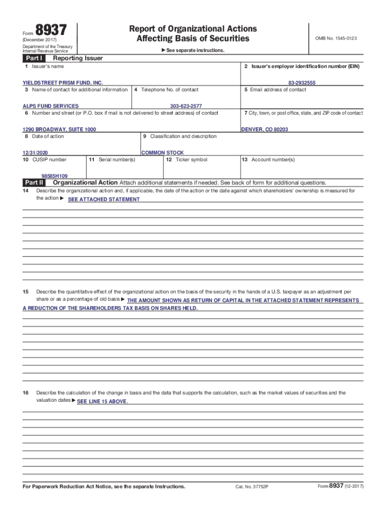 Get the free YIELDSTREET PRISM FUND, INC. 83-2932555 Name of contact ...