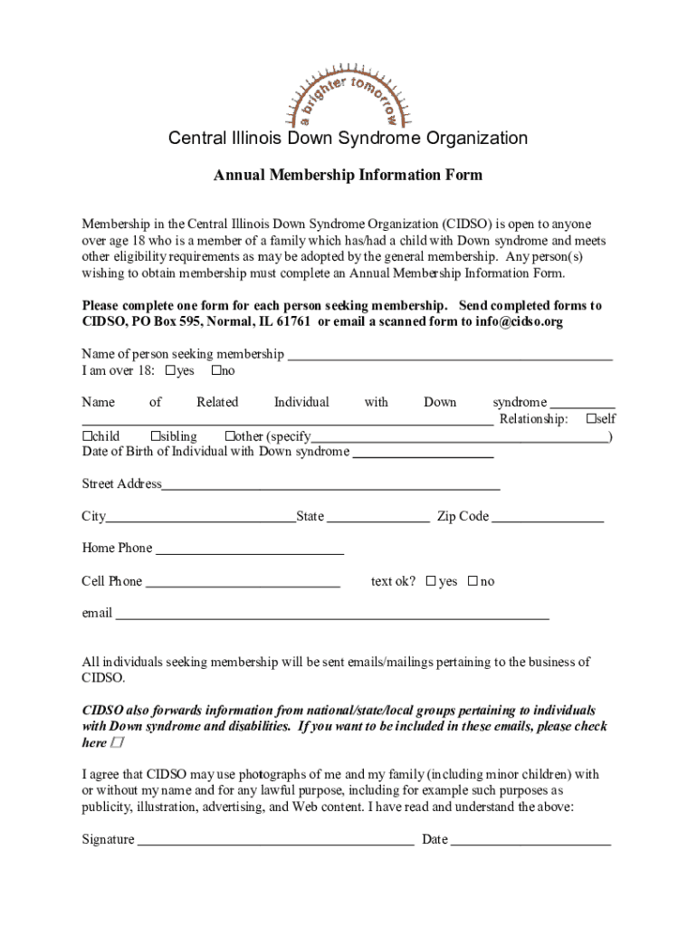 Get the free CIDSO Membership Information Form - Central Illinois Down ...