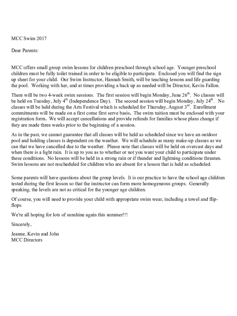 Anyone who is planning to participate in the swim event in 2017 or anyone who needs to request permission to organize the swim event may need the swim 2017 letter.