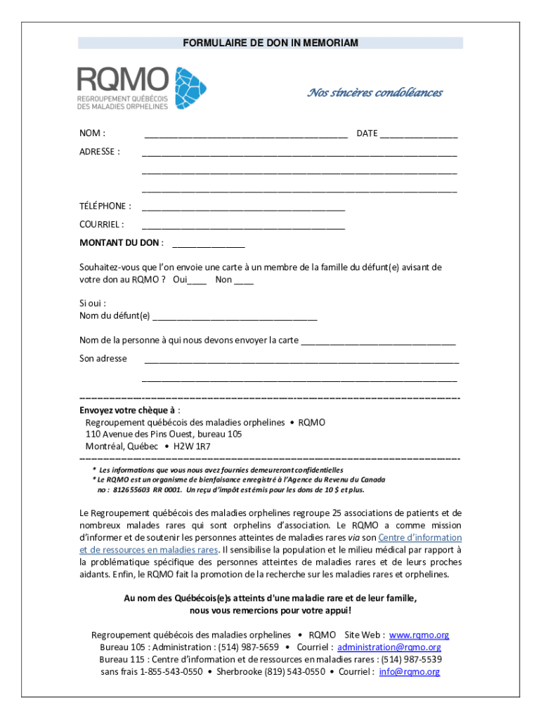 FORMULA IRE DE Dons IN Memorials since condolancesNOM : DATE ADDRESS : PHONE : COURIER : MONTANA DU DON : Souhaitezvous Que Lon envoy one care UN member DE la Camille Du daunt(e) avian DE vote don