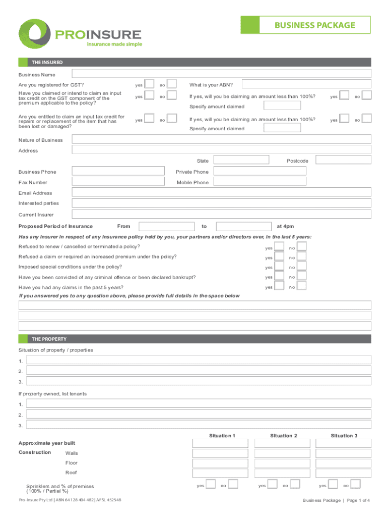 How to fill out business package