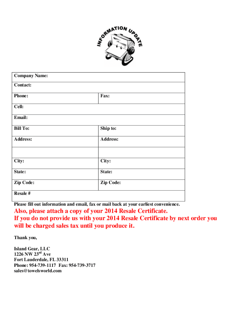 Bill To:Ship to:Address:Address:City:City:State:State:Zip Code:Zip Code:Resale #