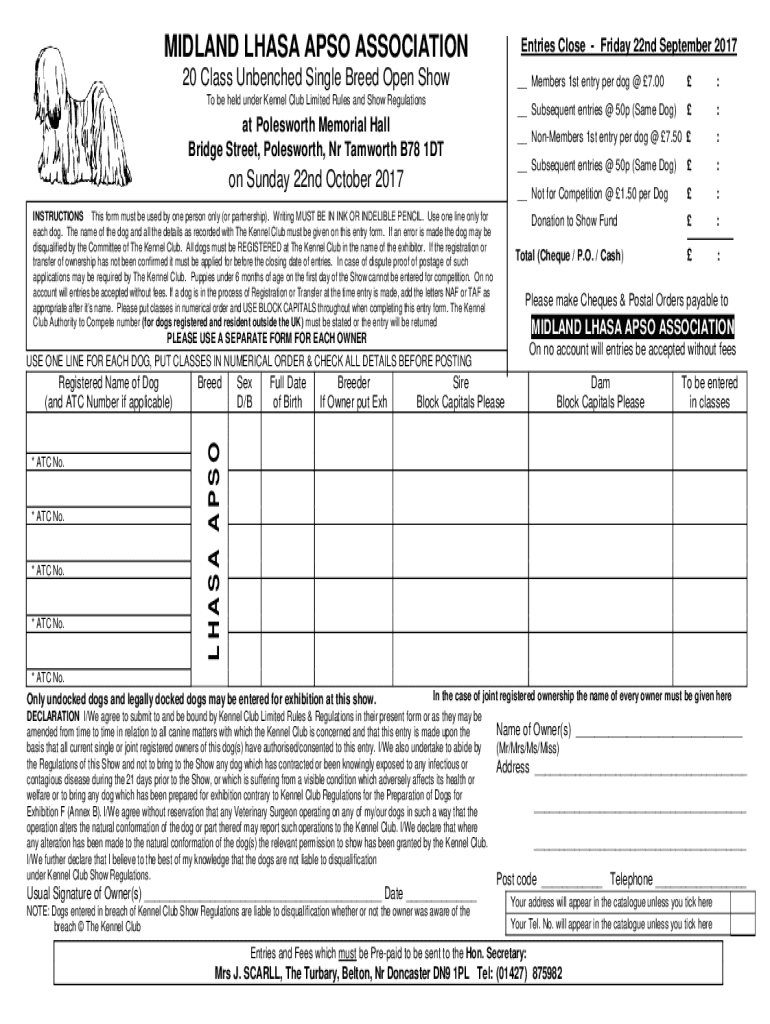 To be held under Kennel Club Limited Rules and Show Regulation sat Poles worth Memorial Hall