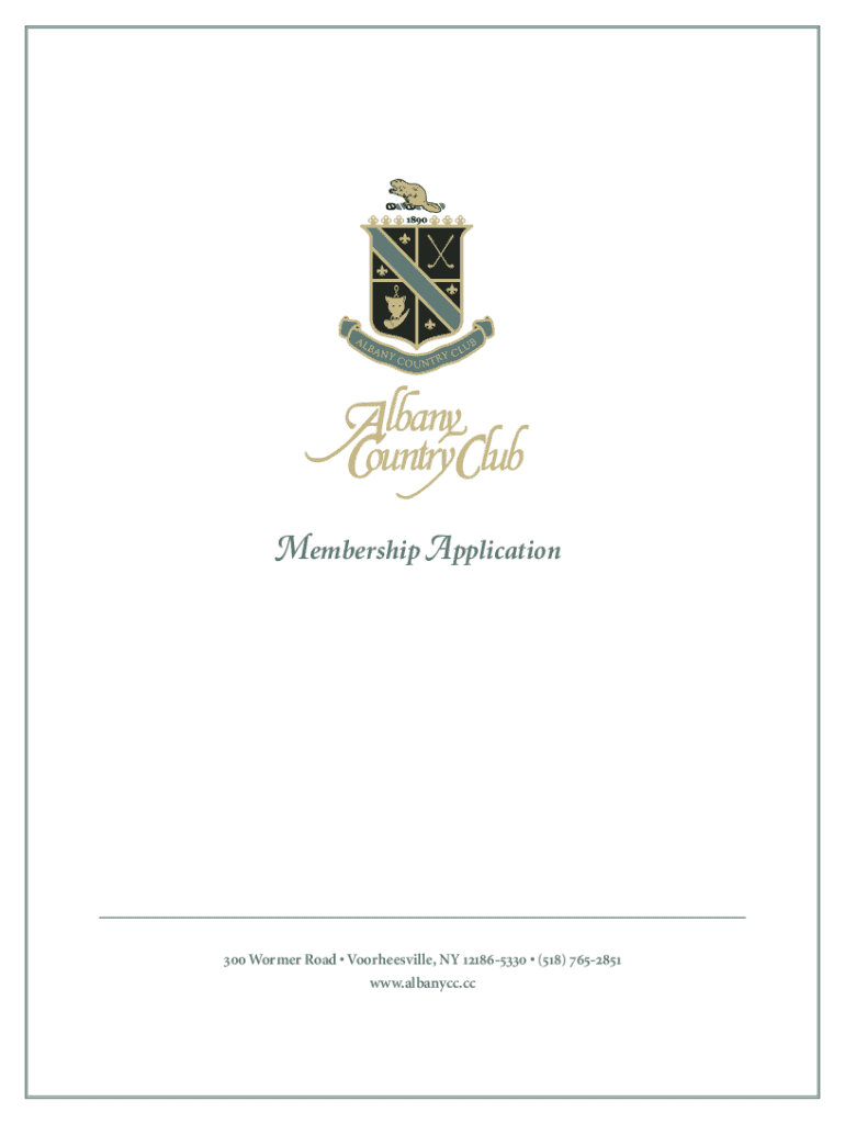 Membership Application300 Former Road Mooresville, NY 121865330 (518) 7652851 www.albanycc.ccType of Membership Desired Check One:Golf Membership out to 25 Individualize 3135 Individualize 4145 Individual