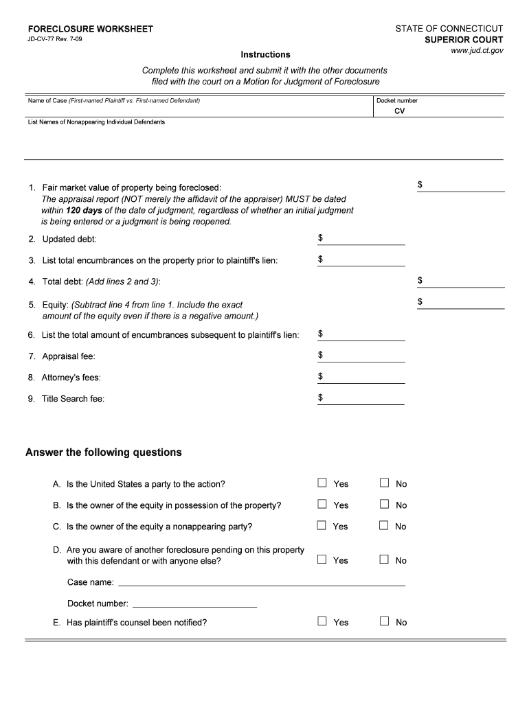 The Foreclosure Worksheet is intended for homeowners in Connecticut facing foreclosure, as well as attorneys, court officials, and legal aid advocates involved in the foreclosure process.