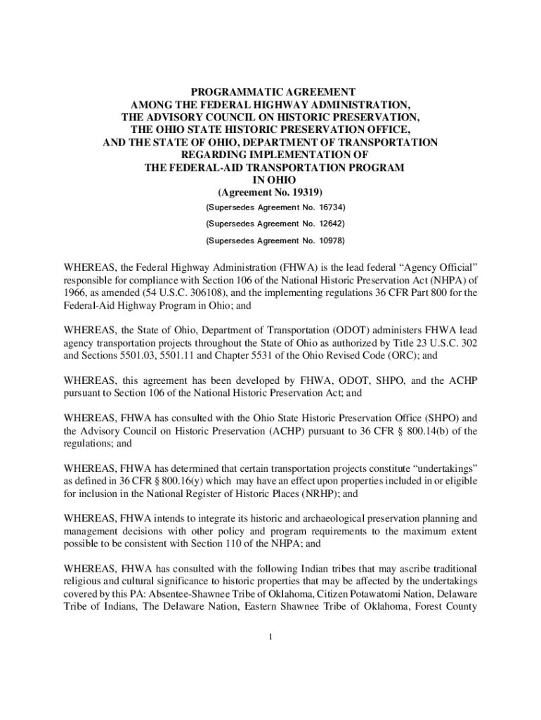 Get the free PROGRAMMATIC AGREEMENT AMONG THE FEDERAL HIGHWAY ...