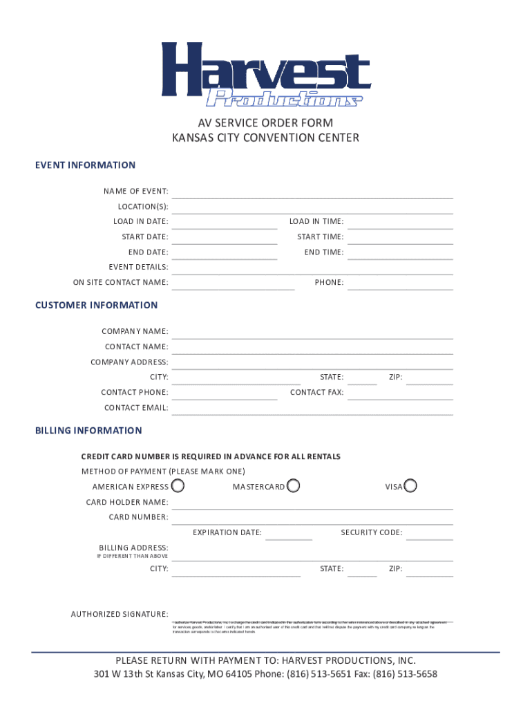 AV SERVICE ORDER FORM