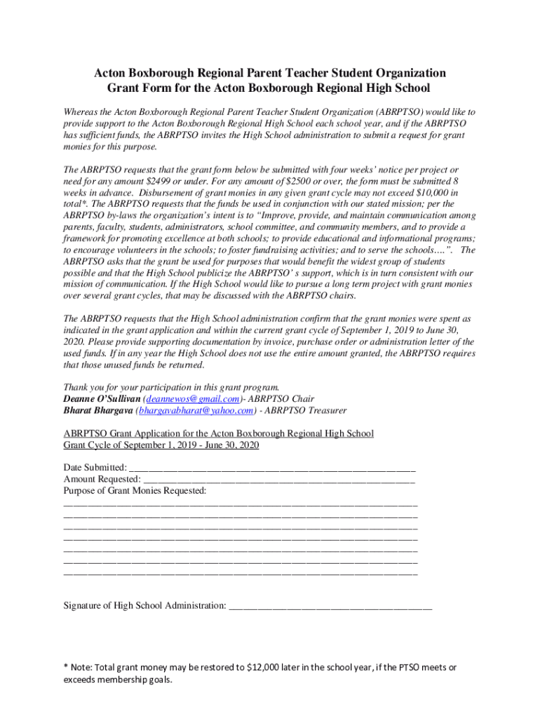 Get the free Acton Boxborough Regional Parent Teacher Student Organization