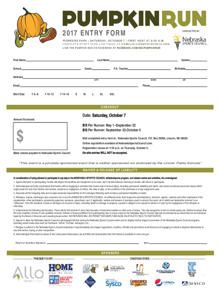 2017 ENTRY FO CONDUCTED BY:P I O N E E R S PA R K S AT U R DAY, O C T O B E R 7 F I R S T H E AT 8:3 0 A. M. C OM P L E T E E V E N T I N F O A N D T I M E S AT N E B R A S K A S P ORT S C OF NC I