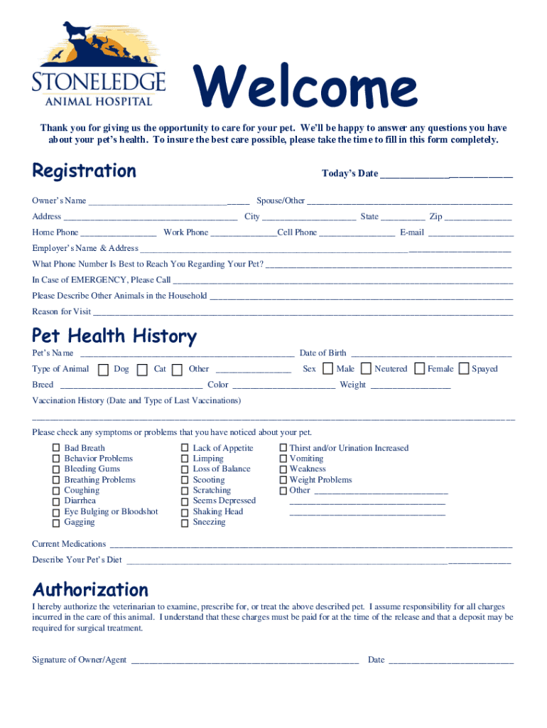 Welcome, Thank you for giving us the opportunity to care for your pet. Well be happy to answer any questions you have about your pets health. To insure the best care possible, please take the time