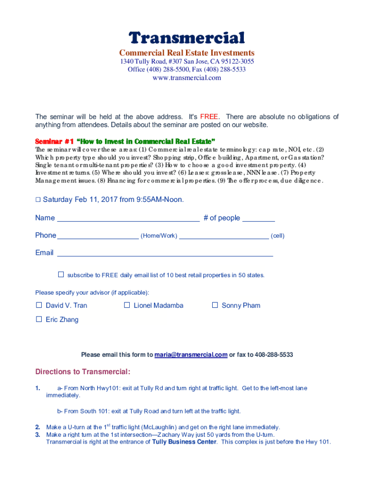 Office (408) 2885500, Fax (408) 2885533www.transversal. Comte seminar will be held at the above address.