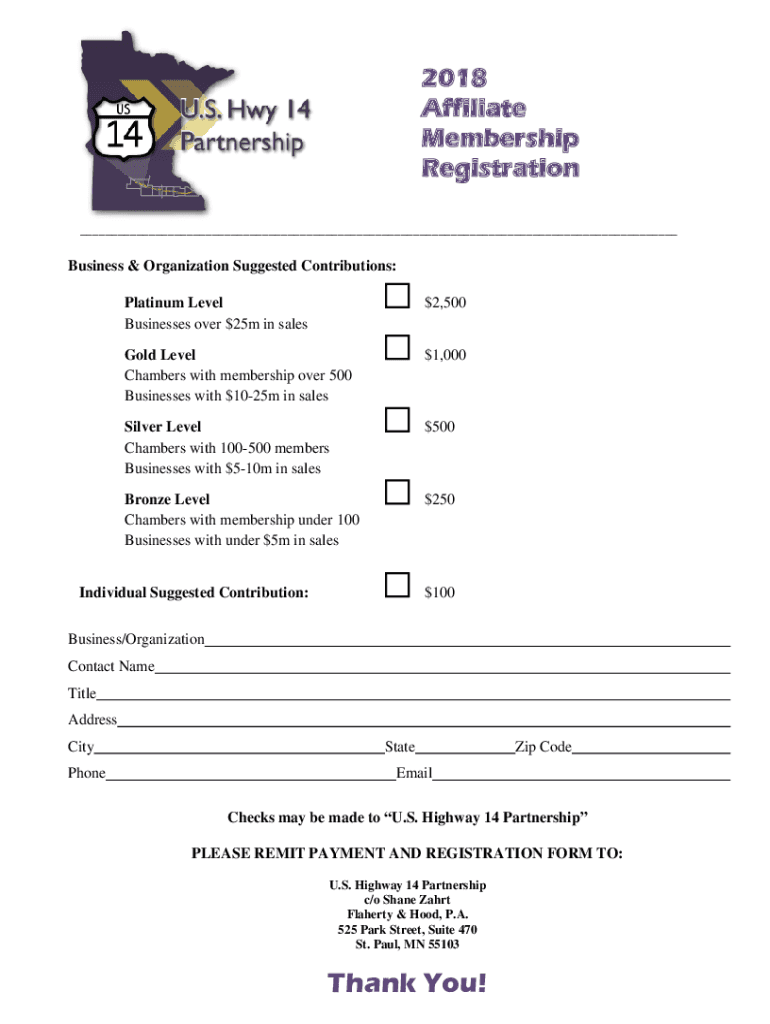 2018 Affiliate Membership Registration Business & Organization Suggested Contributions: Platinum Level Businesses over $25m in sales$2,500Gold Level Chambers with membership over 500 Businesses with