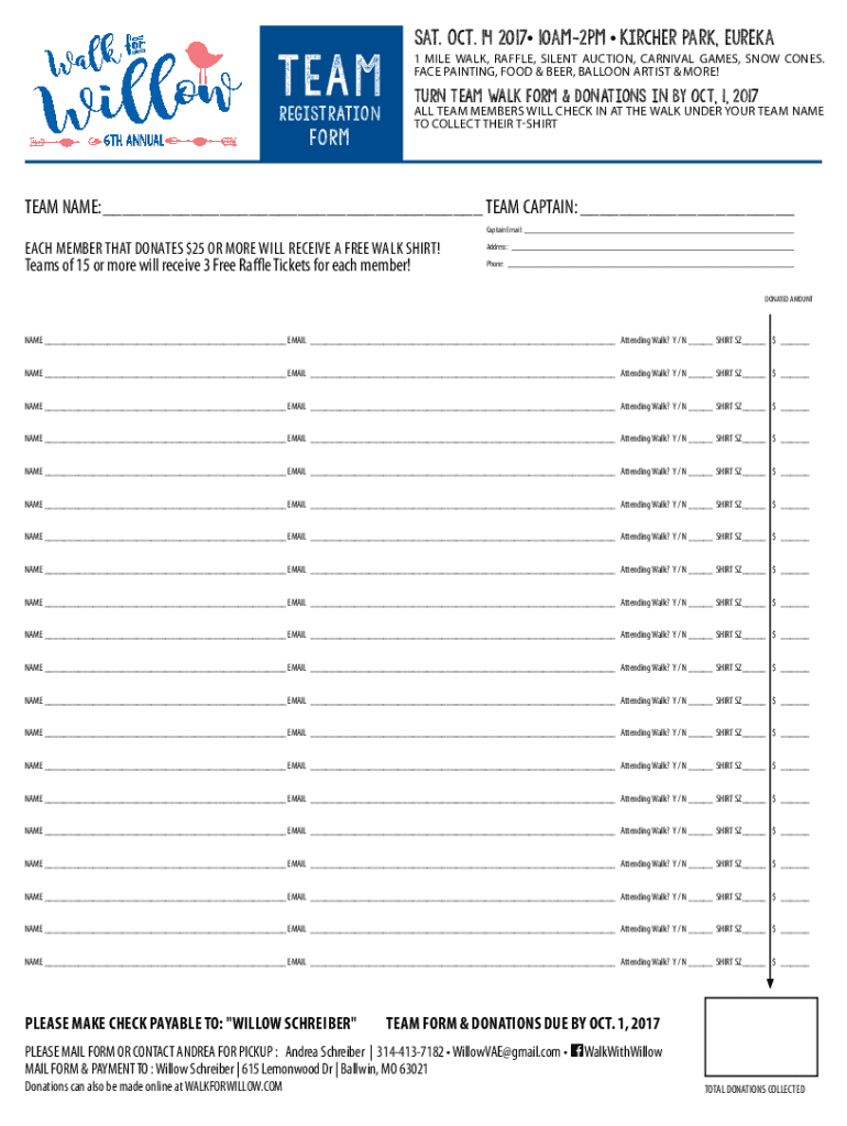 Sat. Oct. 14 2017 10am2pm Kirchner park, eurekaTEAM1 Mile walk, Raffle, silent auction, carnival GAMES, snow cones. Face painting, food & beer, Balloon Artist & More!TURN TEAM WALK FORM & DONATIONS