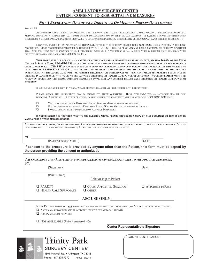 PATIENT CONSENT TO RESUSCITATION MEASURES
