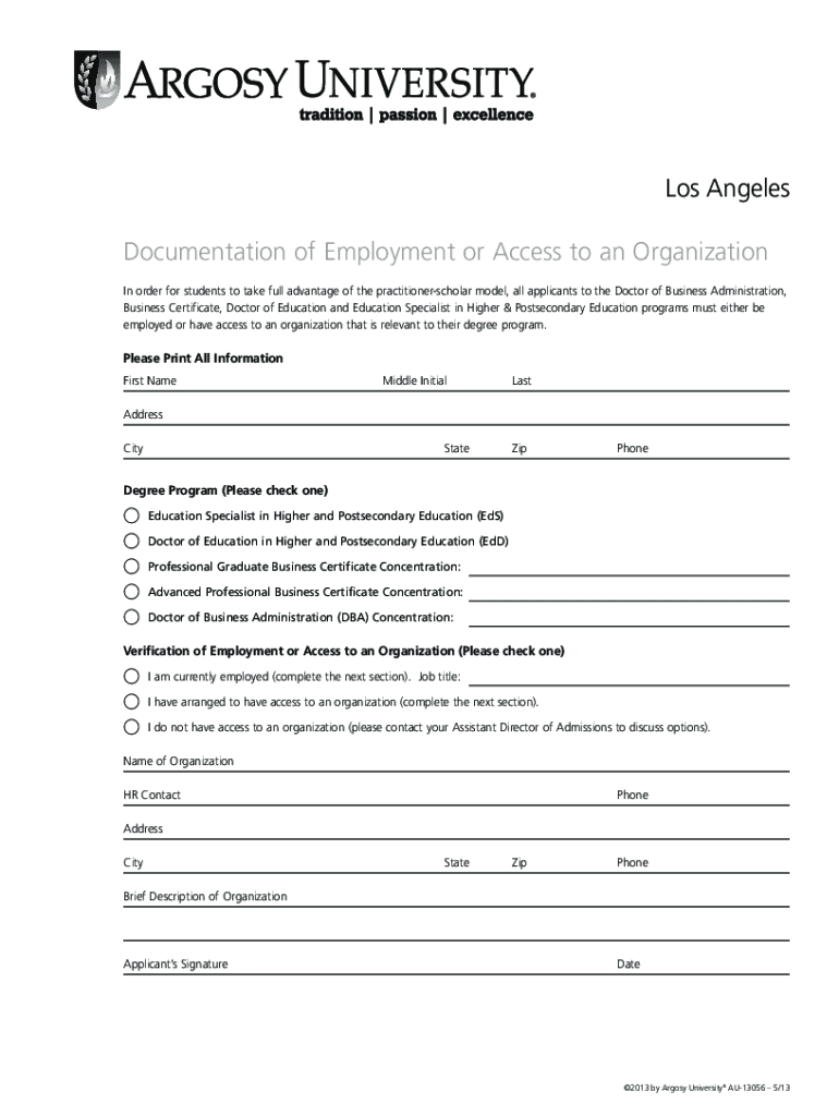Los Angeles Documentation of Employment or Access to an Organization In order for students to take full advantage of the practitioner scholar model, all applicants to the Doctor of Business Administration,