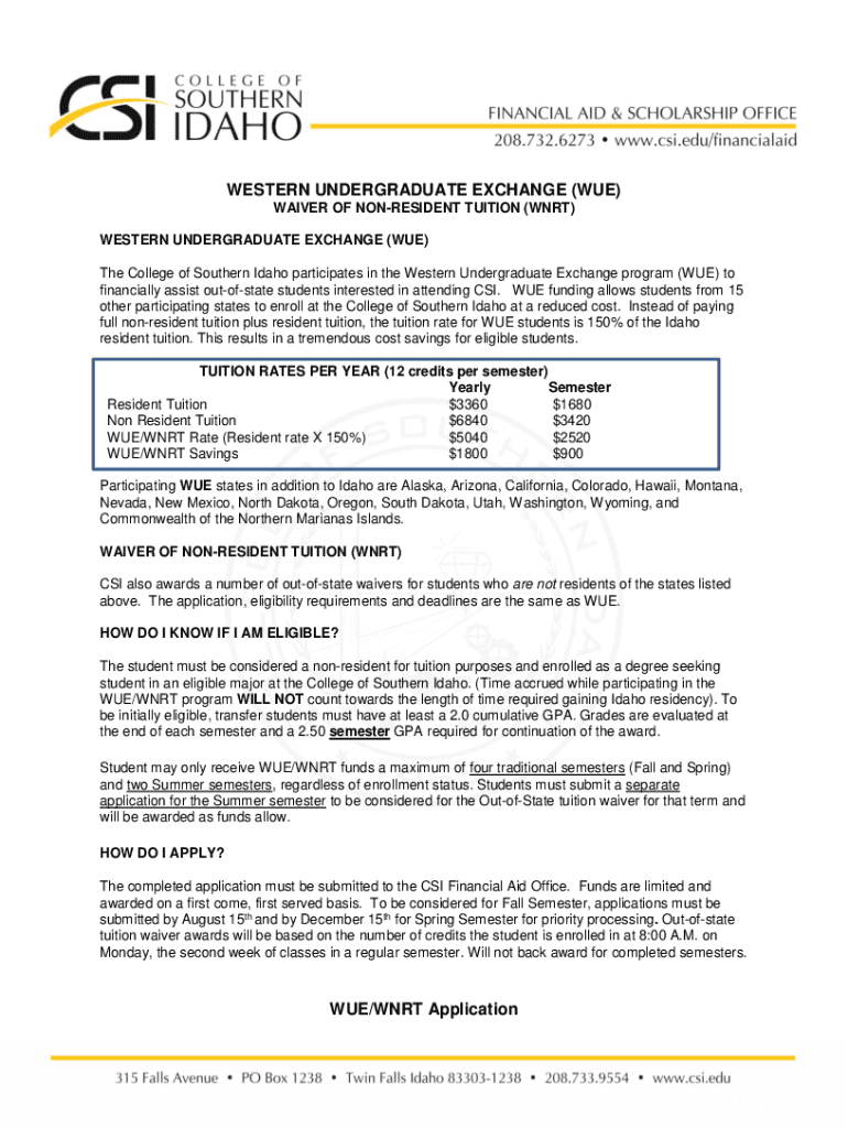 Get the free Western Undergraduate Exchange - Financial Aid and ...