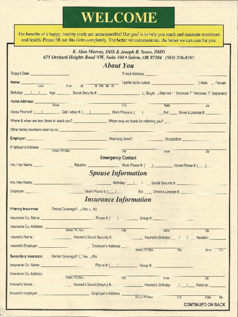Get the free Welcome and thank you for choosing us as your dental health care provider