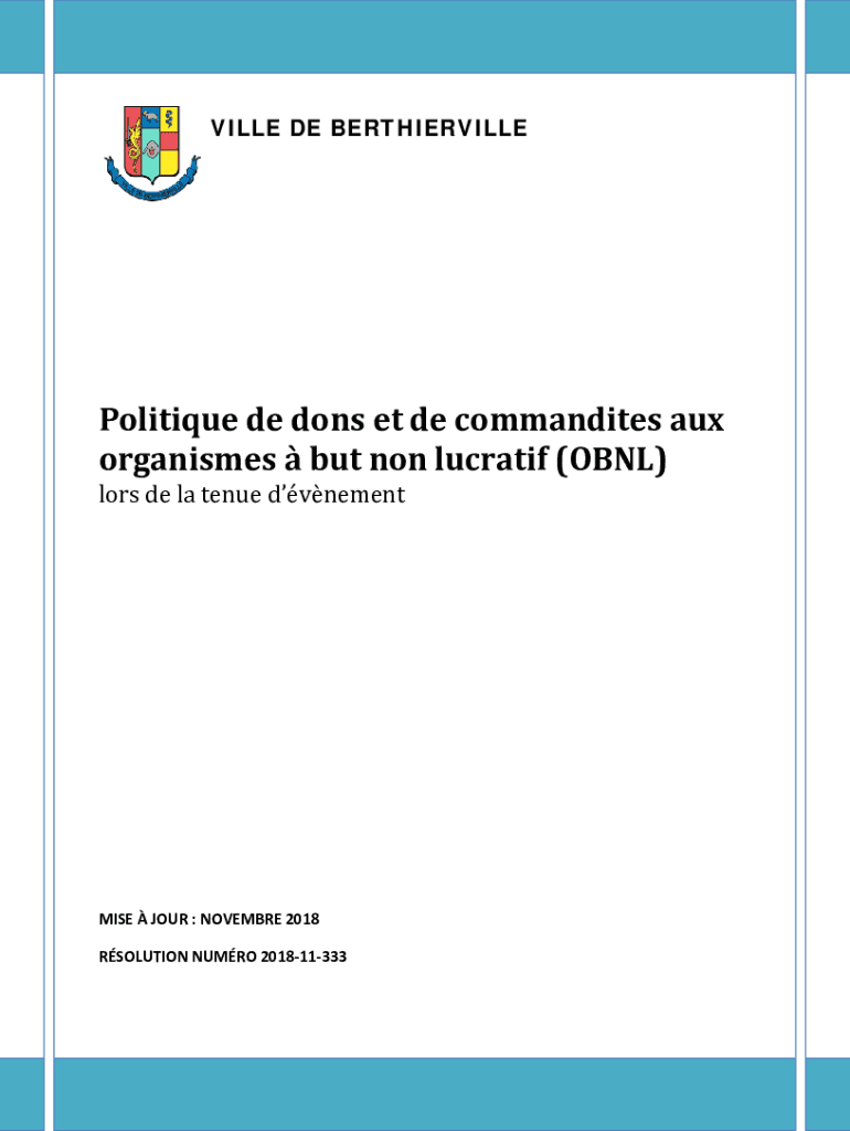 VILLA DE BERTHIERVILLE Political DE dons et de communities auxorganismes but non-lucrative (BNL)loss DE la tenure tenement MISSOURI:NOVEMBRE2018 RSOLUTIONNUMRO201811333VILLEDEBERTHIERVILLE POLITICAL