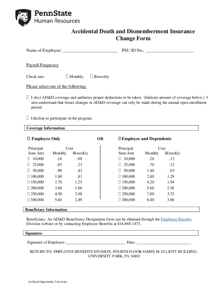 Accidental Death and Dismemberment Insurance