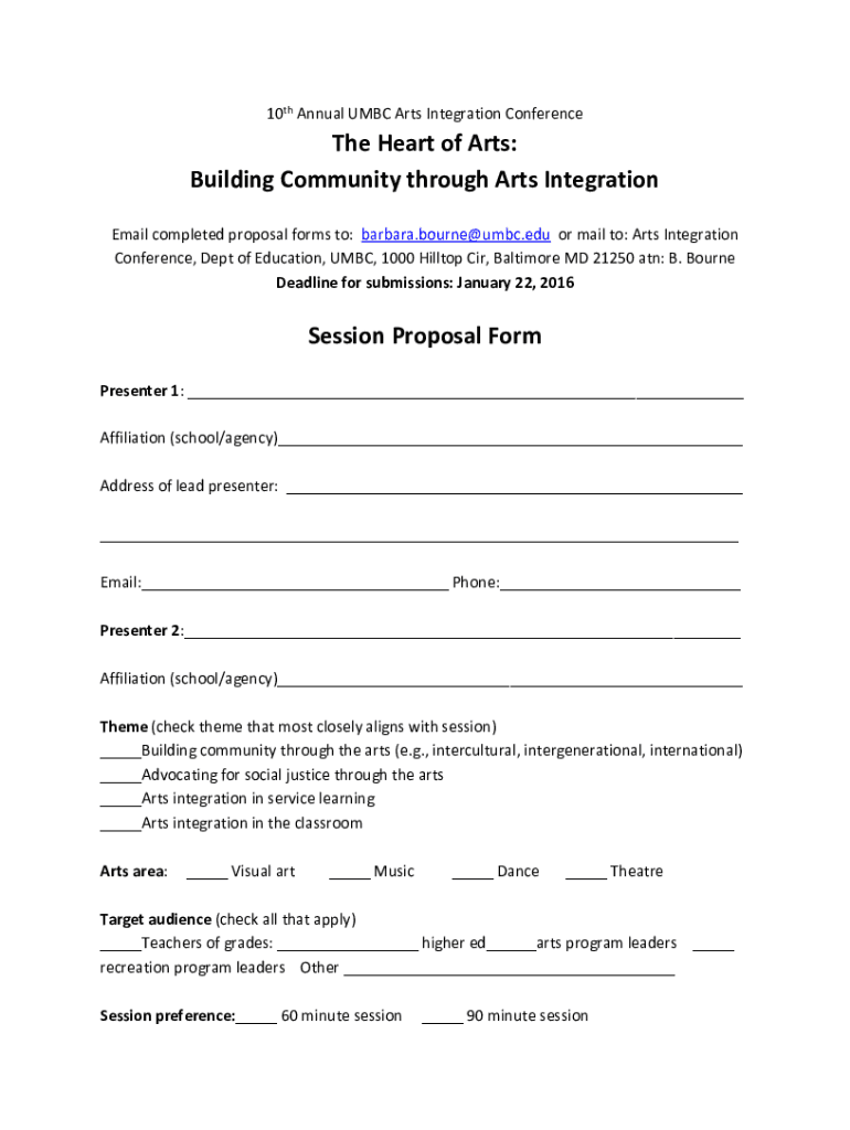 10th Annual MBC Arts Integration Conference Heart of Arts: Building Community through Arts Integration Email completed proposal forms to: Barbara. Bourne MBC.edu or mail to: Arts Integration Conference,