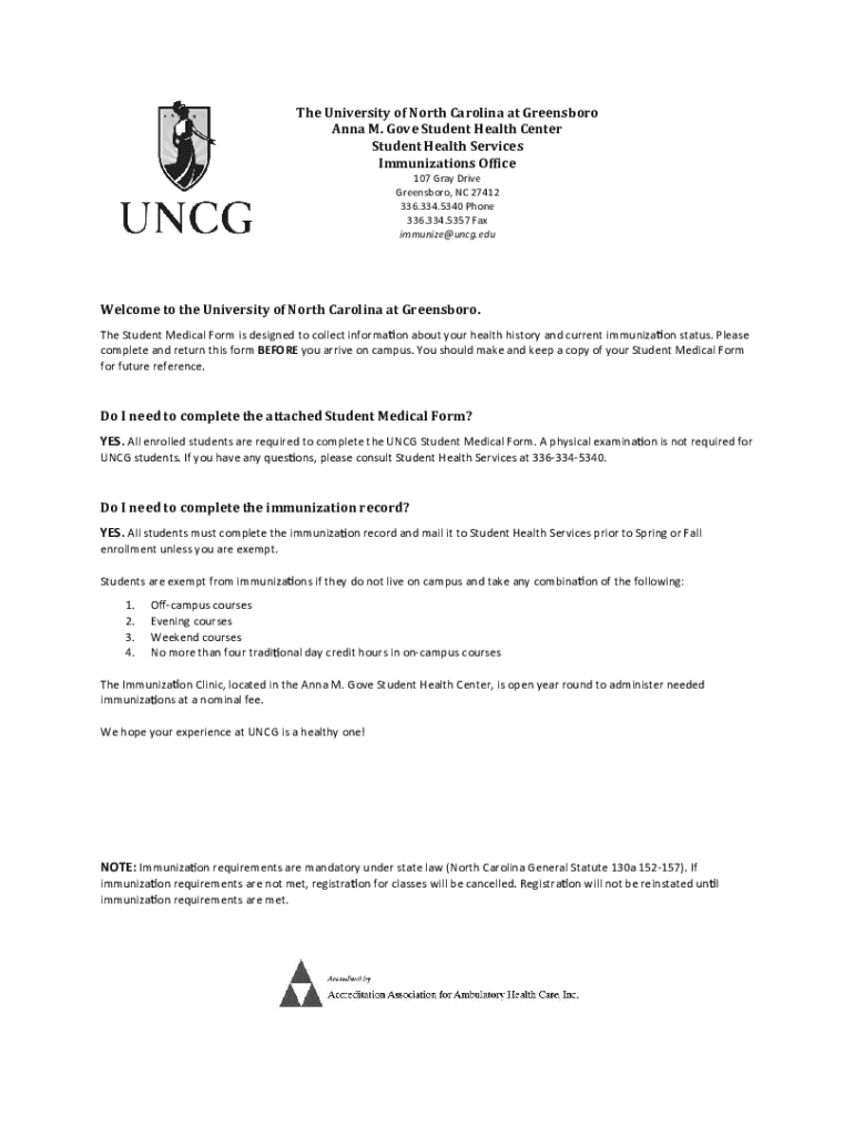 Any student enrolled at UNC Greensboro requires UNC Greensboro SHS - Welcome. It is a vital form for all students seeking access to the healthcare services and resources provided by the Student Health Services. Therefore, both new and returning students should fill out this form to ensure they can receive the necessary medical support during their time at UNC Greensboro.