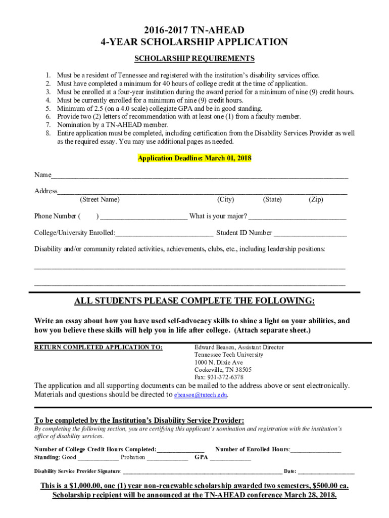8. Must be a resident of Tennessee and registered with the institutions' disability services office.